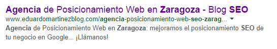 Description: la description es otra meta etiqueta que normalmente aparece también en los resultados de búsqueda acompañando al title. Por ello, será necesario que sea atractiva y que esté perfectamente optimizada en SEO.
